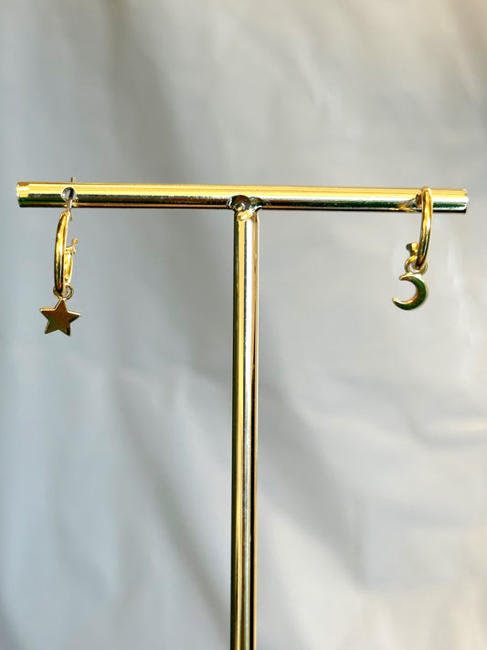 Mismatched Moon Star Dangle Hoop