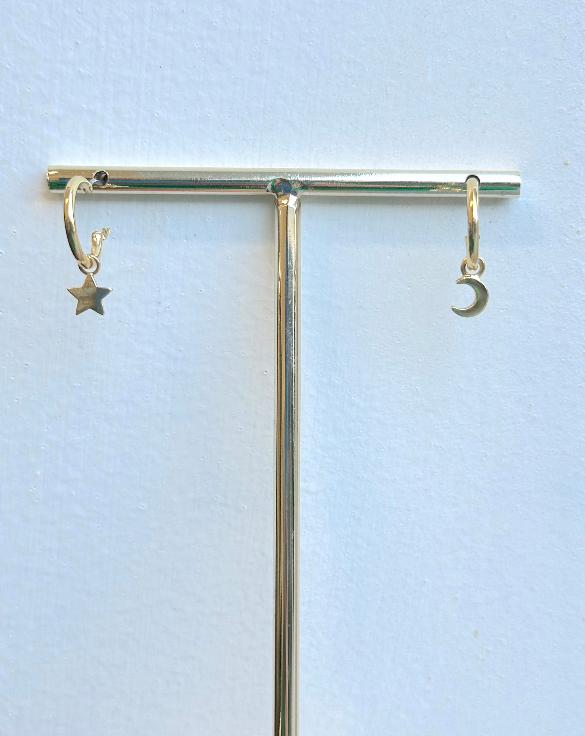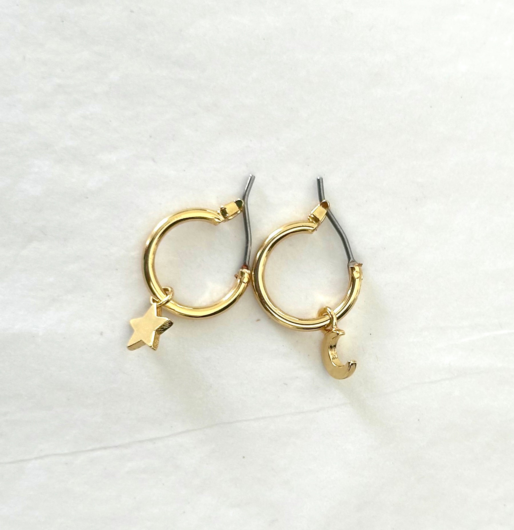Mismatched Moon Star Dangle Hoop